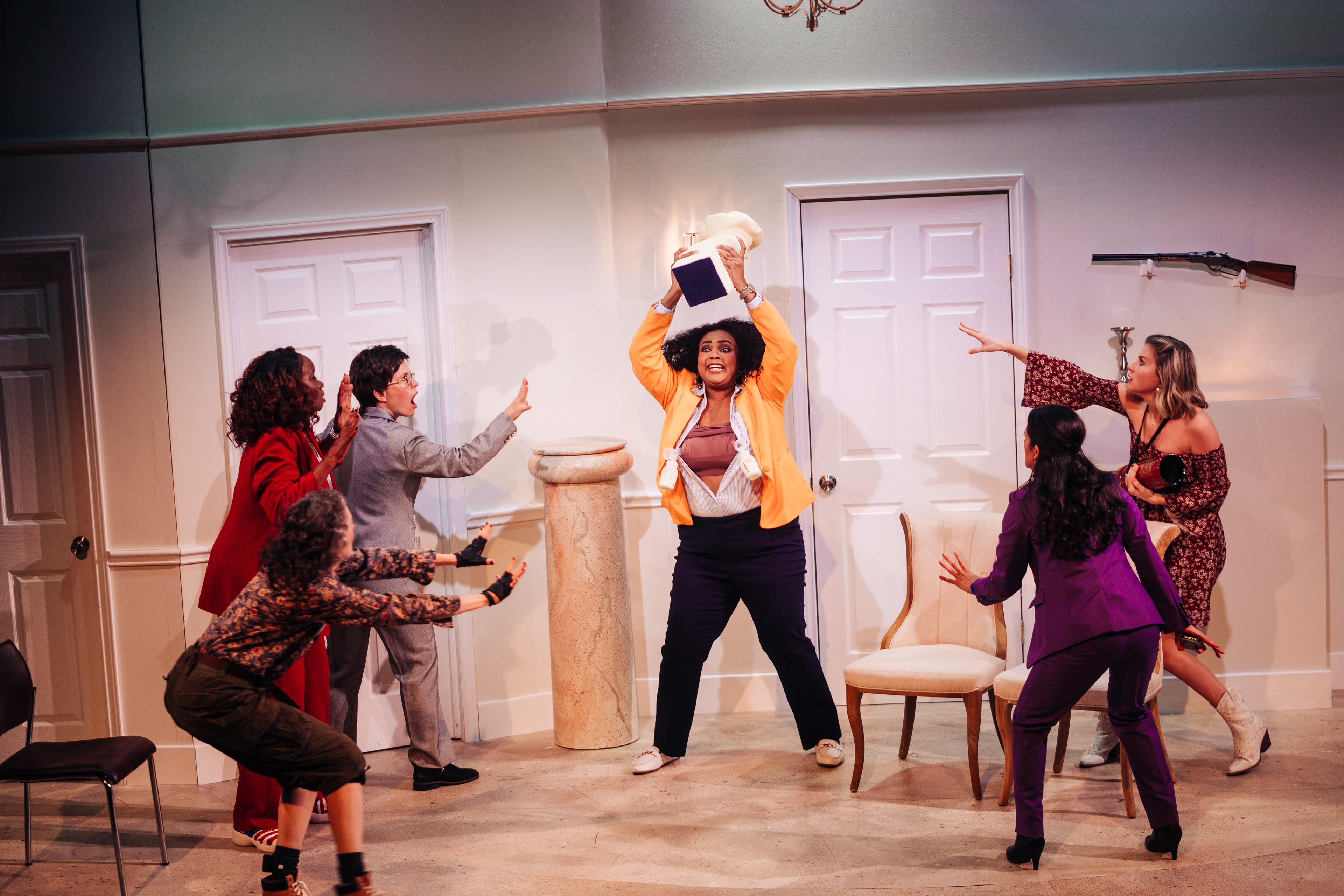 It all starts with a little four-letter word that the President blurts out—and what starts as a PR nightmare, turns into a complete global crisis! The seven brilliant and beleaguered women upon whom he most relies risk life, liberty, and the pursuit of sanity to keep things under control. It’s a total rollercoaster ride as Capitol Hill turns upside down in this riotous comedy. Get ready to laugh your stars and stripes off while you root for the powerful women who actually run the free world!